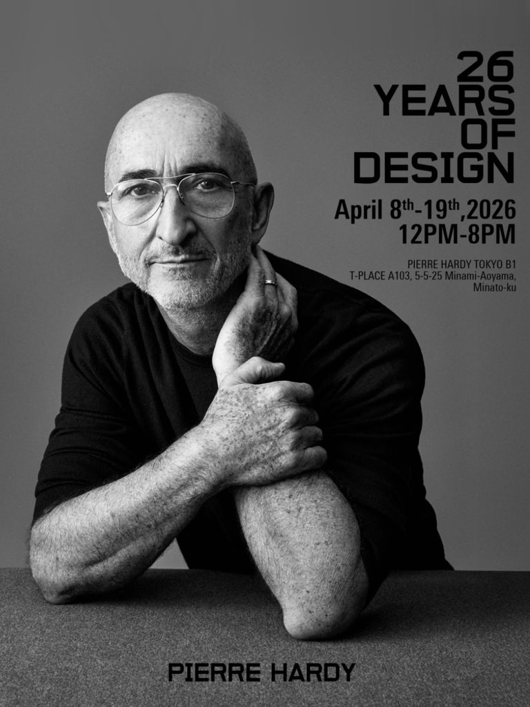 2026年春、ピエール アルディ青山店の10周年を記念してブランドの歩みを振り返るアーカイブ展「26 YEARS OF DESIGN」を開催する運びとなりました。ブランド創業から今年で26年を迎えたピエール アルディ。これまでのコレクションを象徴するシューズのアーカイブピースに加え、デザイナーのオリジナルスケッチやドローイングを展示いたします。ピエール アルディのデザインがどのように構築されてきたのか、そのクリエイティブプロセスを体感できる初開催の展示となります。