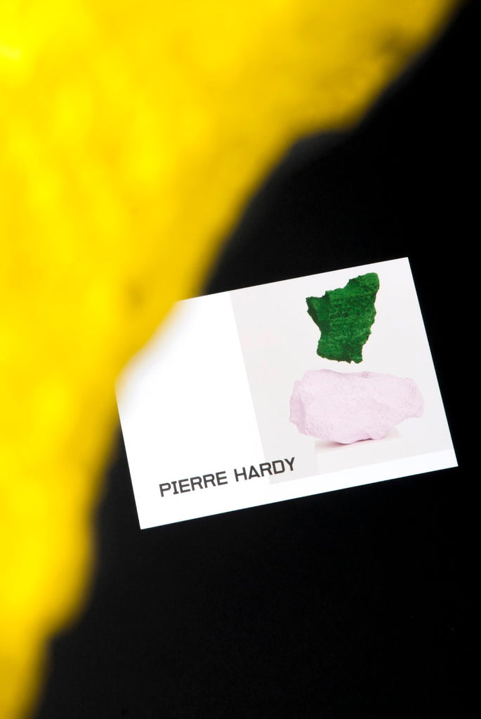 Un esprit pop, quelque part entre Warhol, The B-52’s ou Dee-Lite flotte sur la collection. Références sixties, eighties et nineties s’entremêlent avec allégresse. La gamme de couleurs acidulées chère à Pierre Hardy, fruit de juxtapositions de pastels et de vifs, renforce cette impression de fraîcheur.