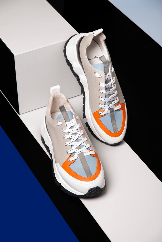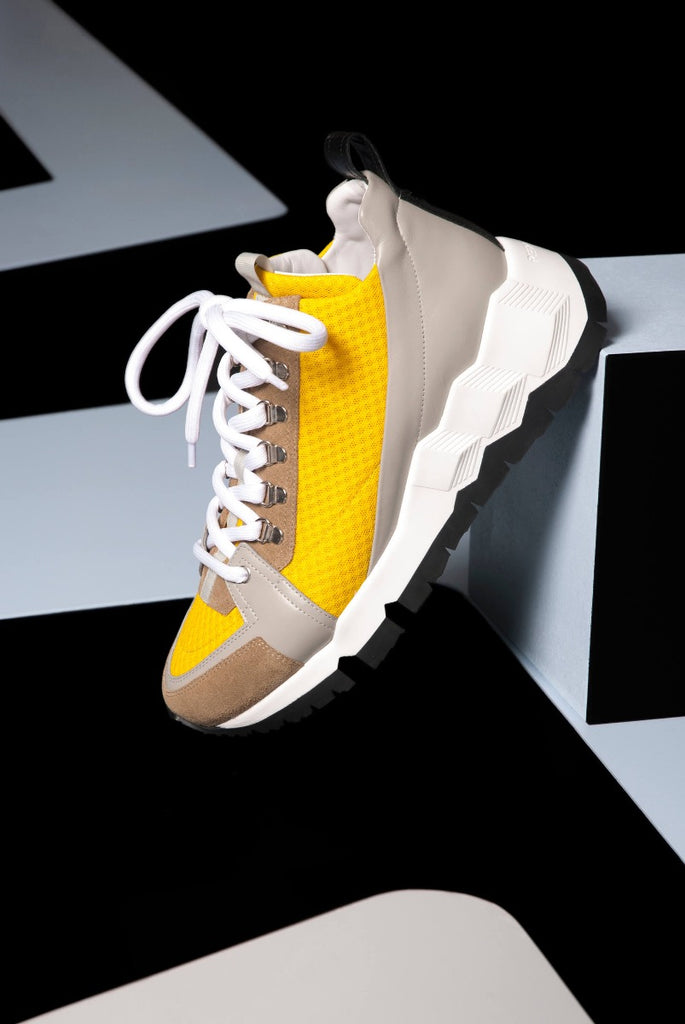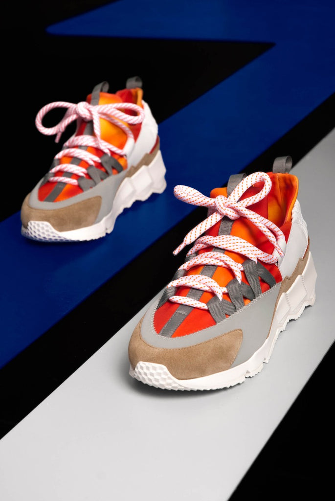 Second, the sport models refer to a more urban aesthetic. Two new sneakers, the Vibe and the Trail, play on graphic constructions. Pierre Hardy designs extremely striking models in contrasting tones.