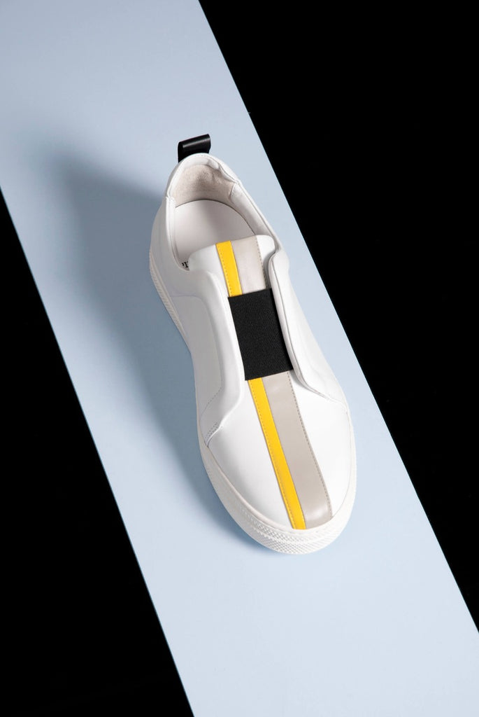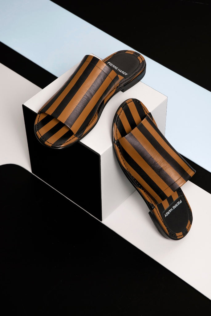 Casual or sporty, these models are often punctuated with colourful lines, whether it’s in black and Havana leather for the dressed models or in overlapped leather bands for the sneakers. Pierre Hardy defines a new dynamic tempo.