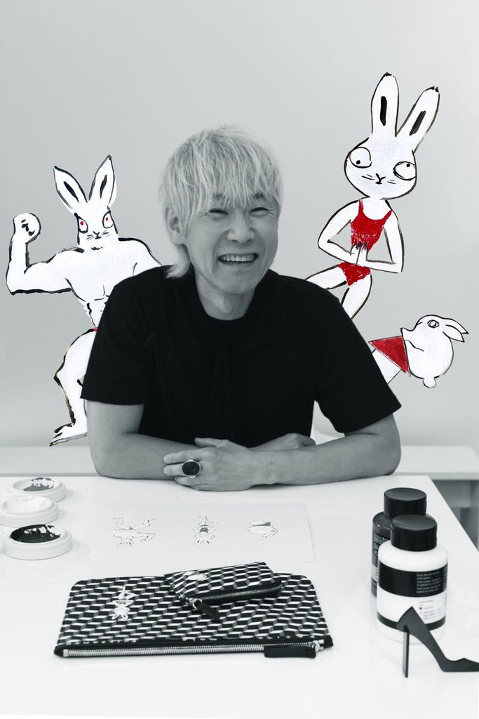 一方はウサギを最も好きな動物とし、それを自身の作品の多くに取り入れました。もう一方は、キューブを象徴的なモチーフとして選び、毎シーズン展開しています。どちらも多才なアーティストであり、シンスケは美術家、指揮者、舞台美術家として活動しています。一方、ピエールはデザイナーでありクリエイターです。このコラボレーションは、彼らの違いに基づいて、一方の詩情がもう一方の幾何学性と交わりました。そして、「Miss Yoga」「Mister Strong」「Usagi」という3つのキャラクターが、キューブ柄のバッグ、ジッパー付き財布、ポーチに描かれることになりました。