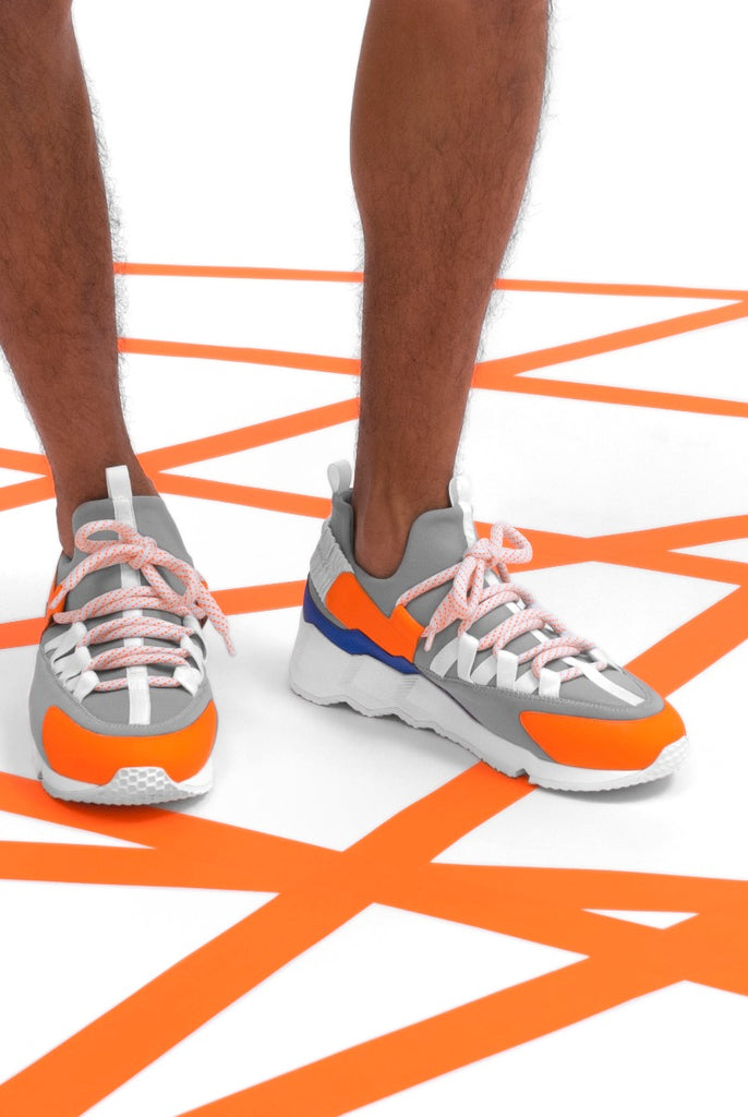 La Trek Comet Neon signe la première édition en proposant la basket Trek Comet dans un colori exclusif. En cuir mat et néoprène, les aplats de bleu électrique et d'orange fluo s'entrechoquent et accentuent le style graphique et dynamique du modèle.