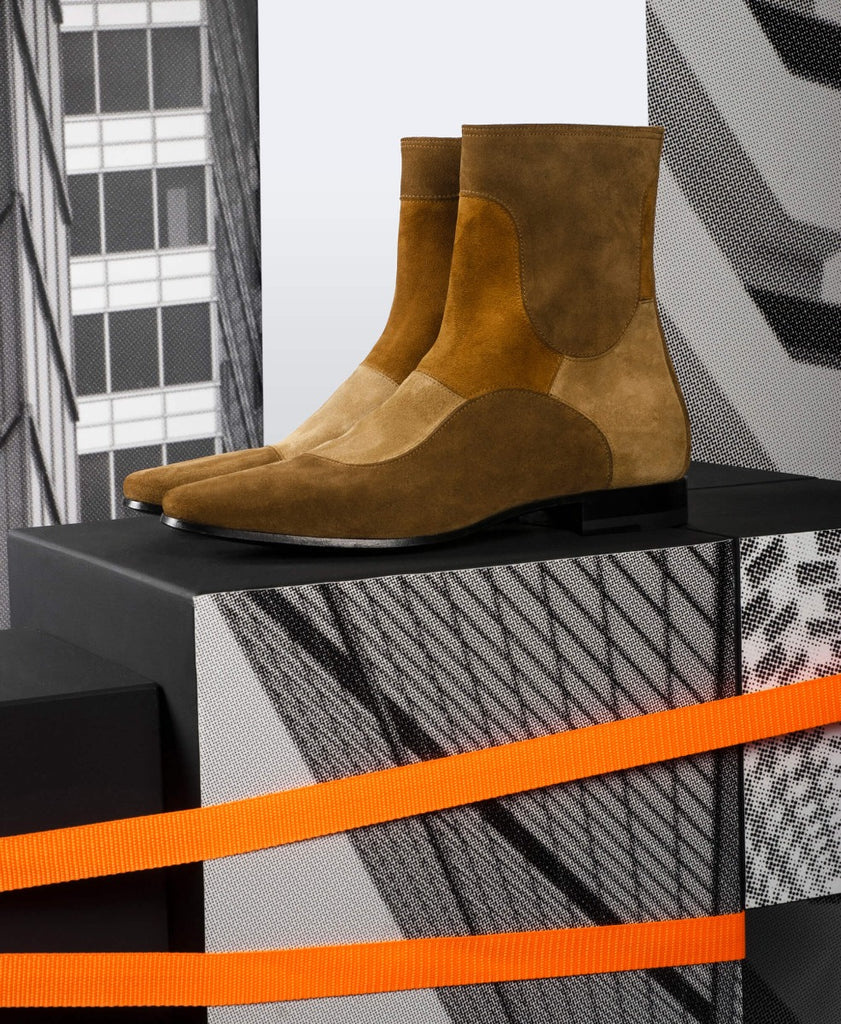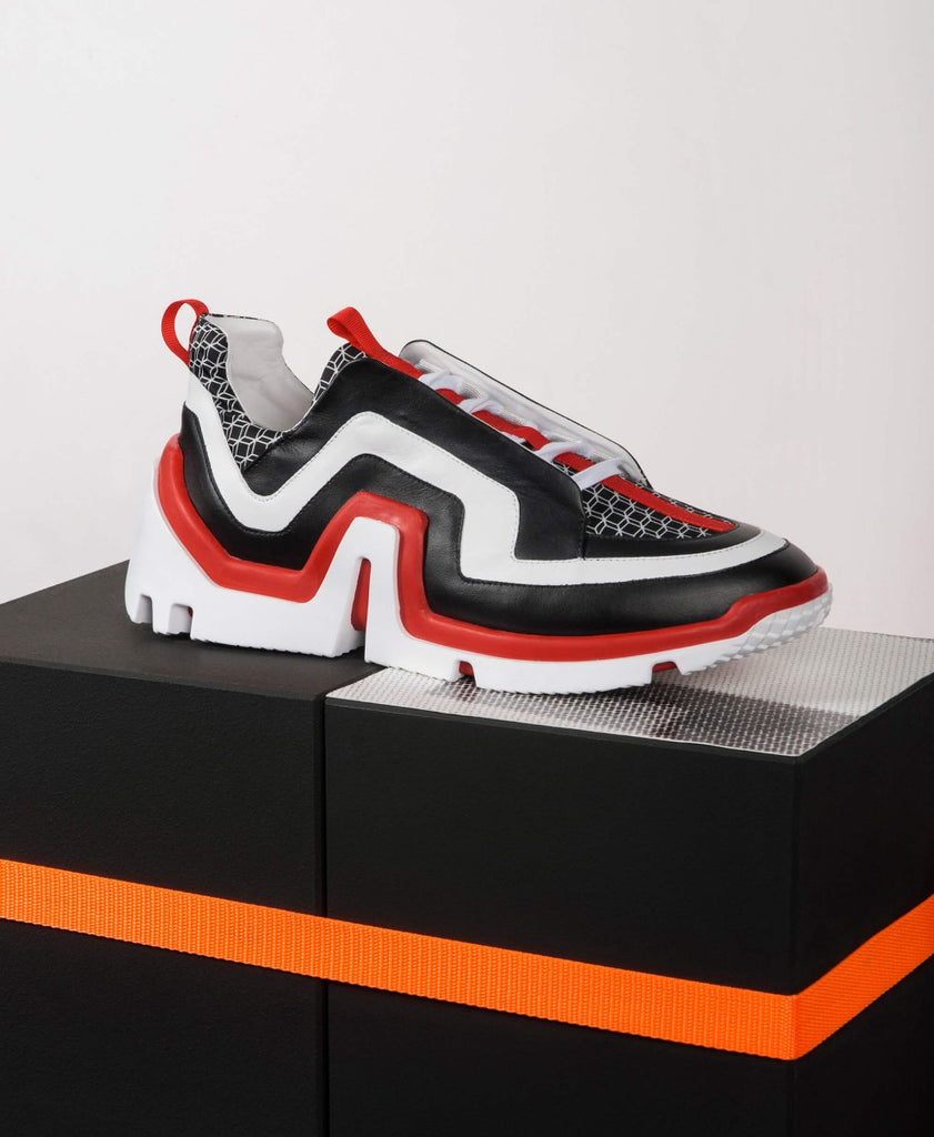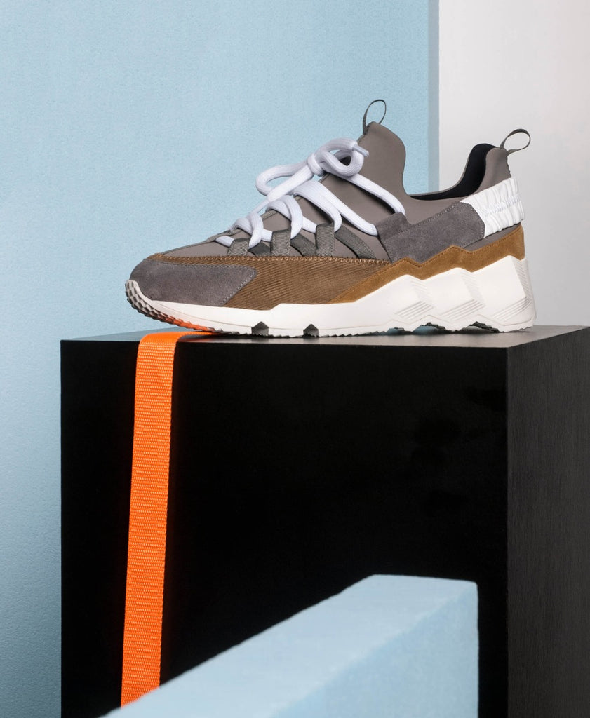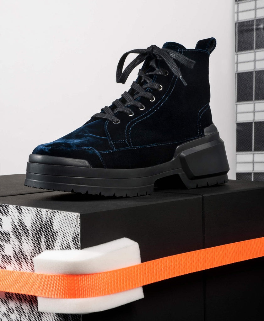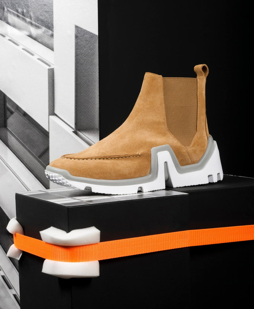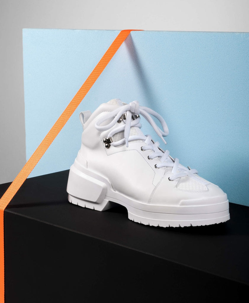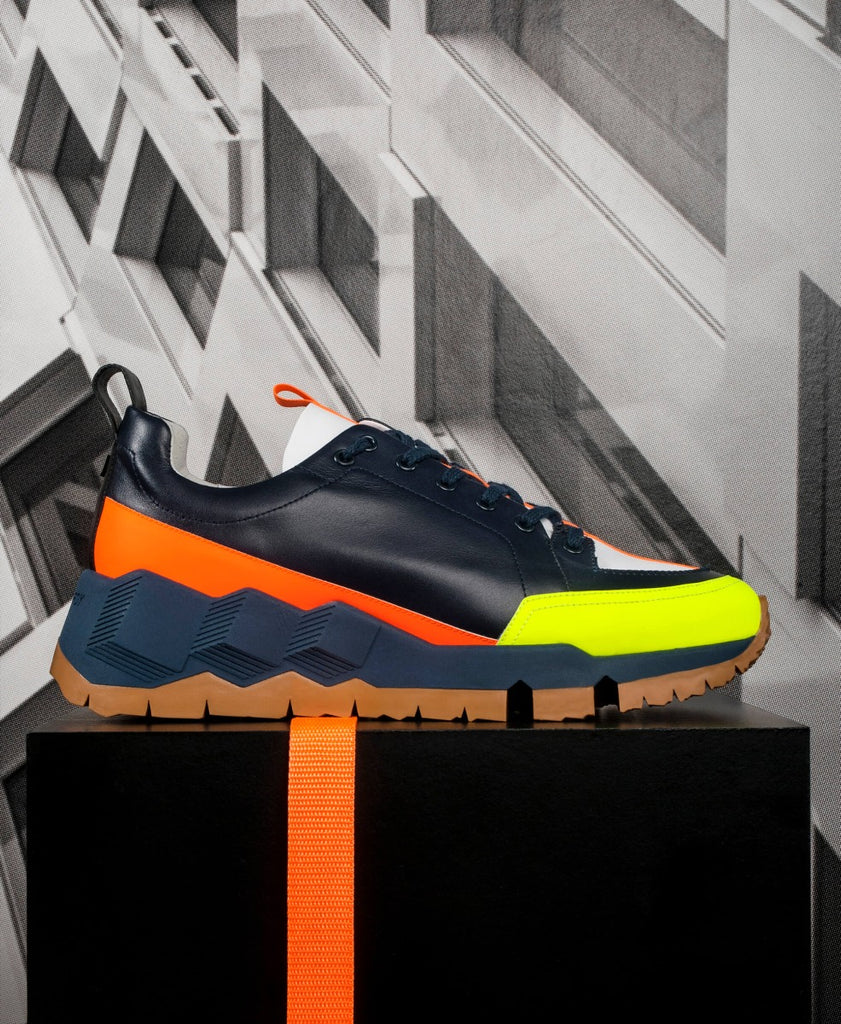 This season, Pierre Hardy’s collection is a tribute to the urban cultures, not necessarily with streetwear shoes, but through mutant ones, mixing codes and styles in constancy with the transformations in our lifestyles. True to his graphic perception, the Parisian designer fuses sports references with dress shoes and casual or outdoor styles.