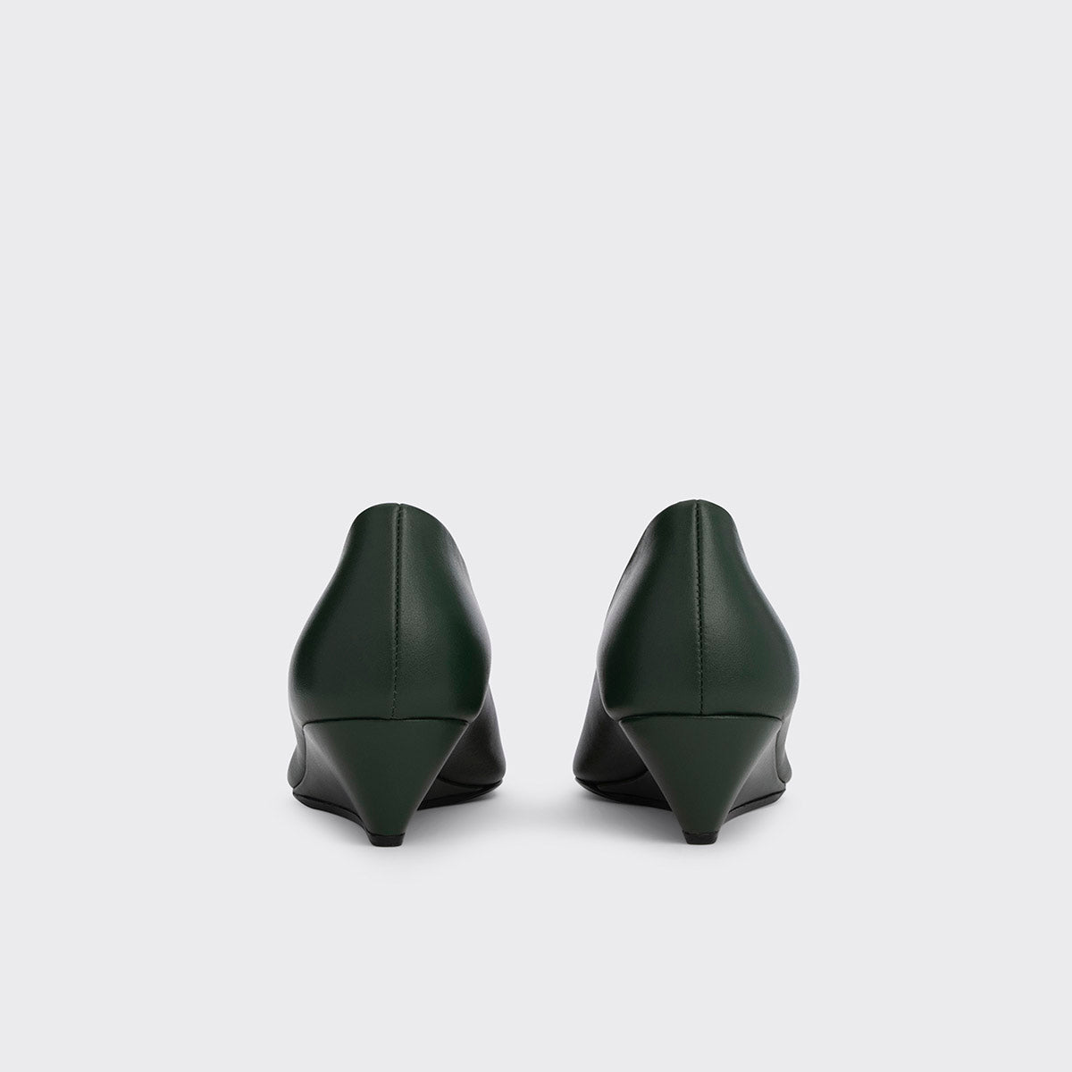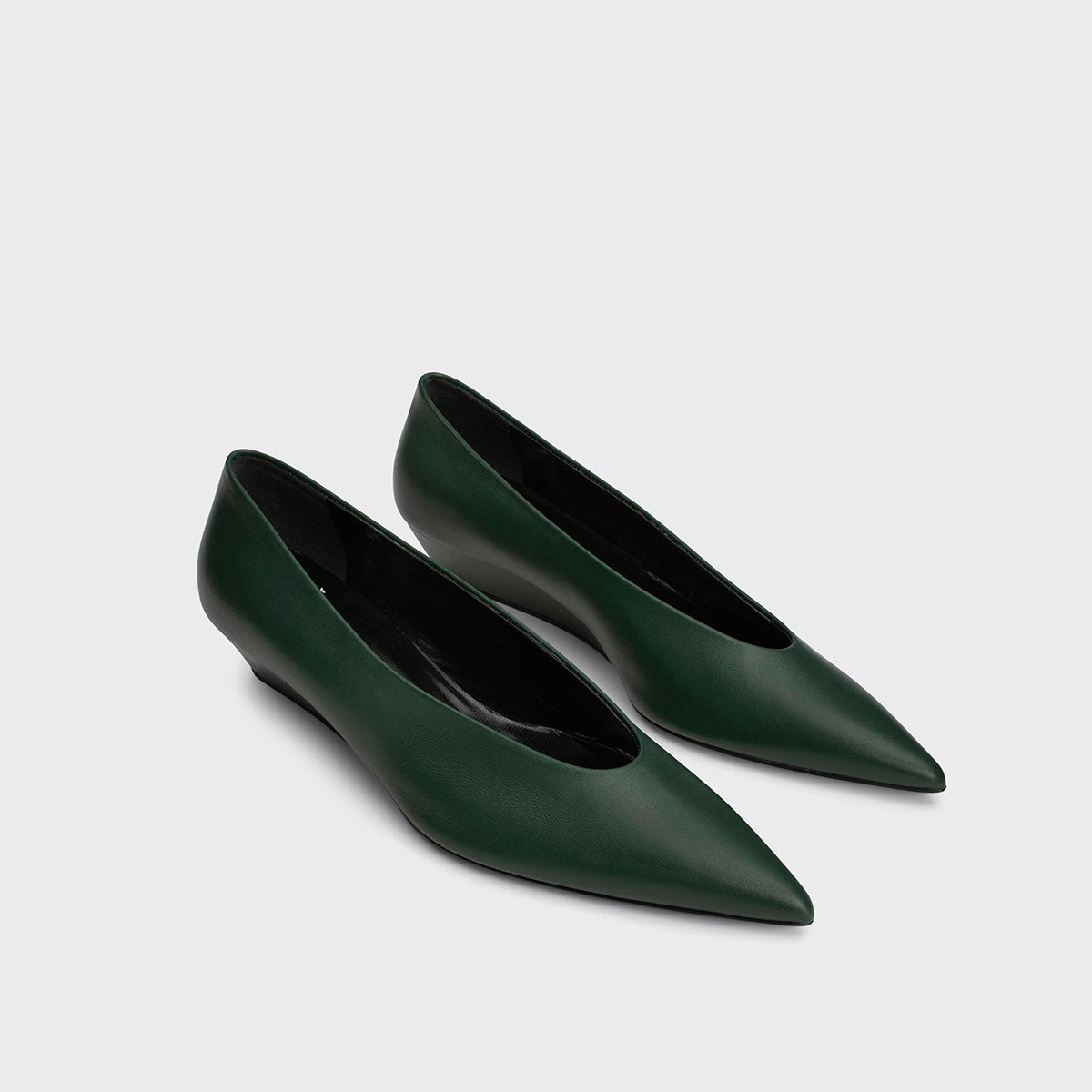 エレガントなシンプルさを備えたアンバーパンプス。アンバースリングバックの洗練されたデザインをクローズドバージョンで再現しながら、1990年代にインスパイアされたミニマルなルックを継承しています。高めのネックラインが足を優しく引き立て、長めのつま先と3.5cmのウェッジヒールがモダンな雰囲気を醸し出します。快適さと洗練さを兼ね備えた大胆なシルエットです。