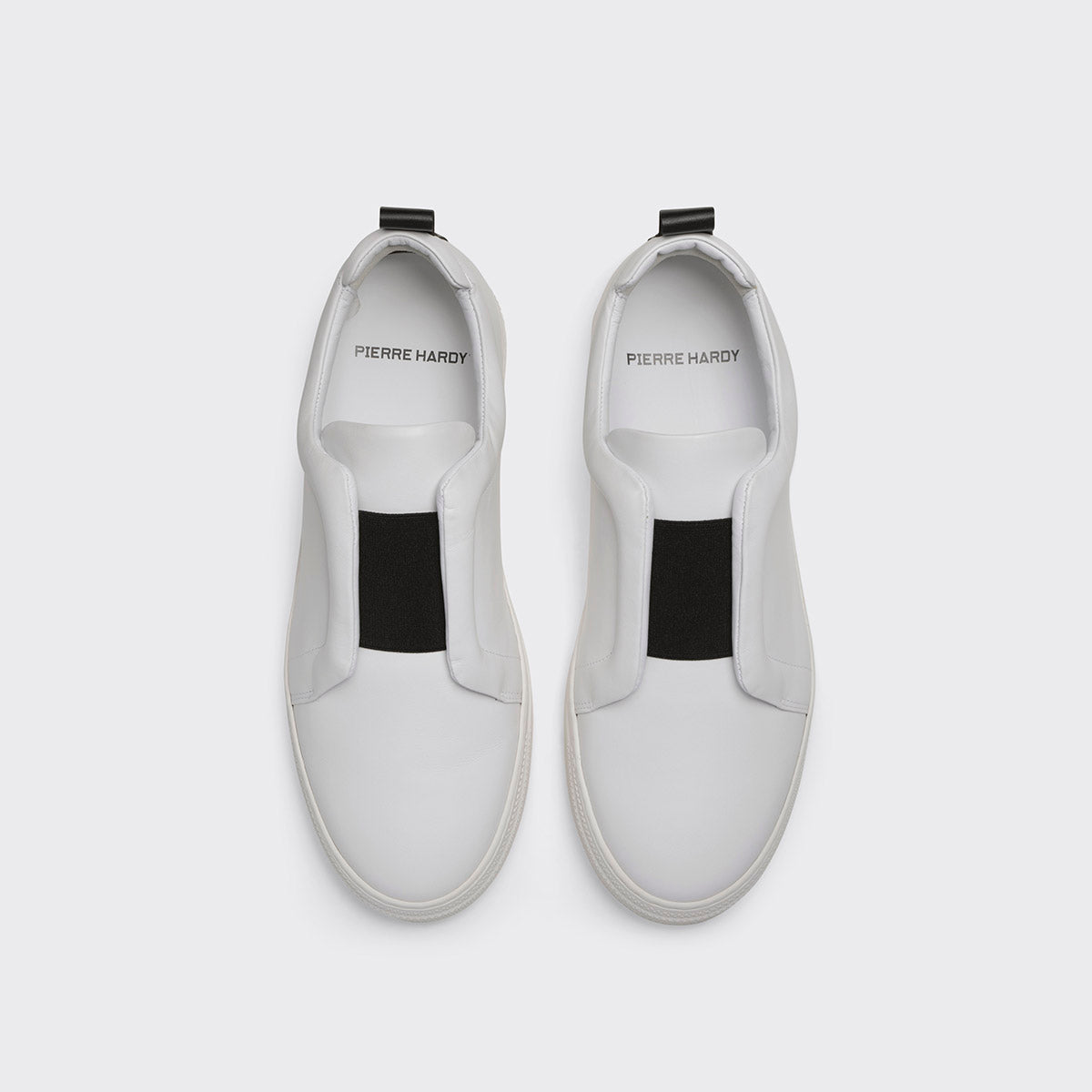 シューレースの無いミニマルなデザインが特徴的な「スライダー」スニーカー。コレクションに登場して以来、ピエールアルディを象徴するスニーカーとなっています。上質でシンプルなホワイトレザースニーカーはどの季節のスタイリングにもフィットします。着脱しやすくシーンを選びません。