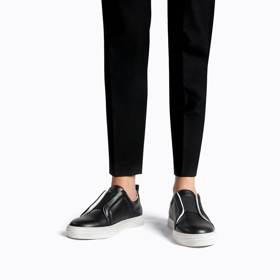 シューレースの無いミニマルなデザインが特徴的な「スライダー」スニーカー。