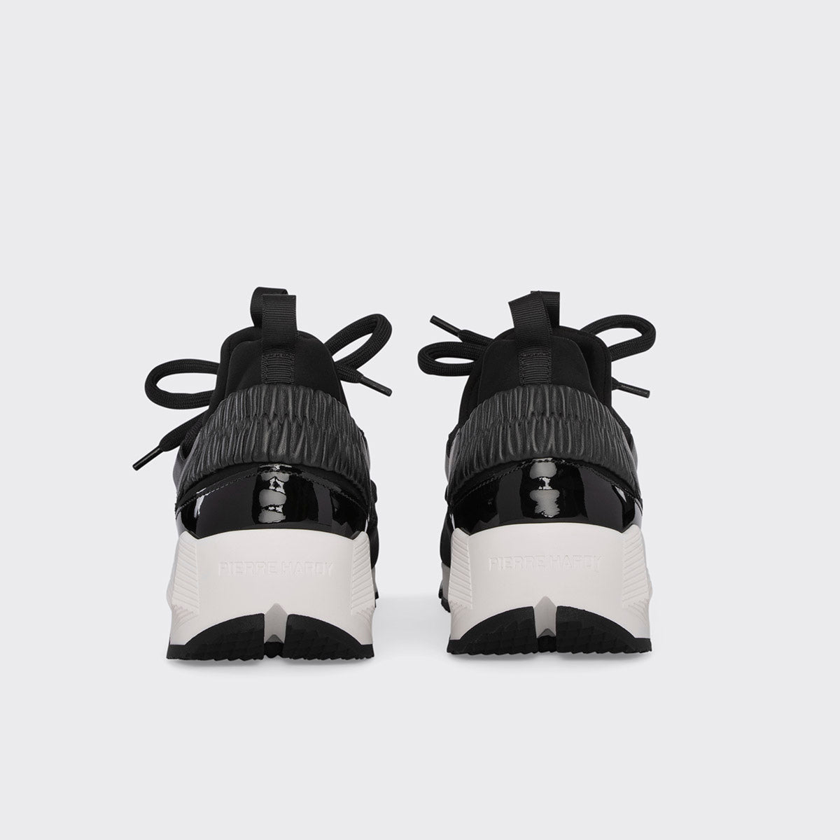 特徴的なキューブ柄をプレスしたソールが目を惹き、後方部のパテントレザーがモード感と遊び心を兼ね備えています。抜群のトラクションと快適な履き心地で、スタイリッシュな外観と機能性を両立します。