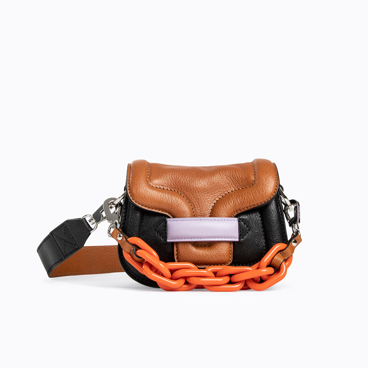 「アルファ ヴィル」は、エレガントで都会的なミニバッグ。クロスボディとチェーンをハンドル持ちにできる2つの仕様で、携帯電話やミニウォレット、リップスティックを収納できるサイズ感。日常の必需品を手軽に持ち運べます。