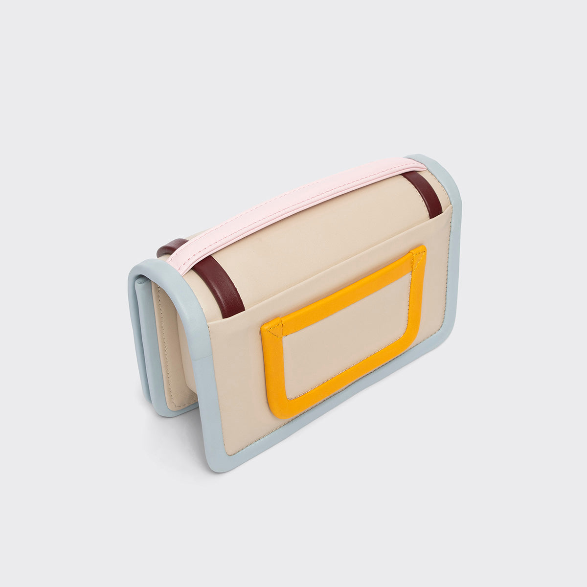 ピエールアルディの代名詞とも言える「アルファ ハンドバッグ」。鮮やかな色の組み合わせが印象的で、他に類を見ないアートのようなデザインです。ファスナーを使わない、シンプルな構造にもこだわっています。斜めに掛けてクロスボディとしたり、ハンドル持ちでクラッチバッグとしても使えます。