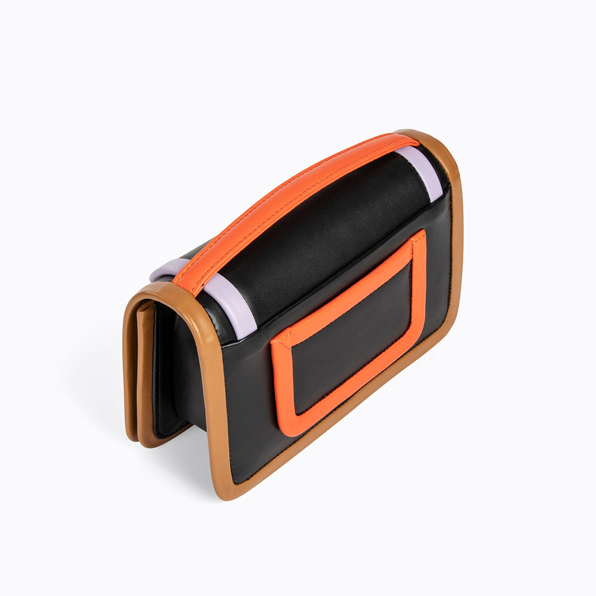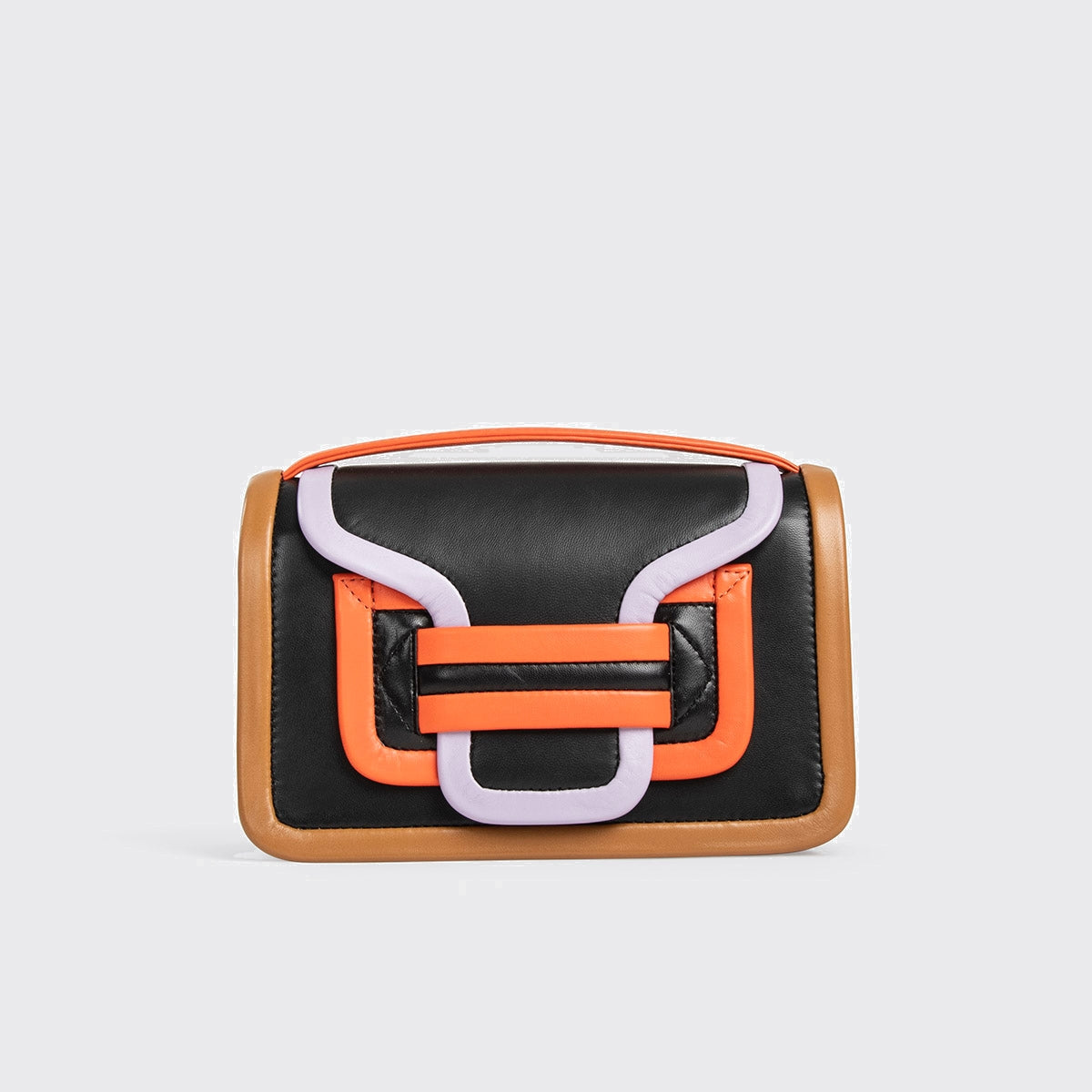 ピエールアルディの代名詞とも言える「アルファ ハンドバッグ」。鮮やかな色の組み合わせが印象的で、他に類を見ないアートのようなデザインです。ファスナーを使わない、シンプルな構造にもこだわっています。斜めに掛けてクロスボディとしたり、ハンドル持ちでクラッチバッグとしても使えます。