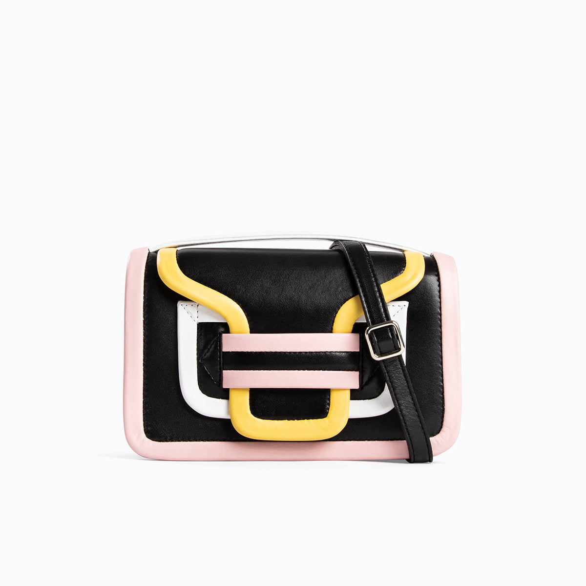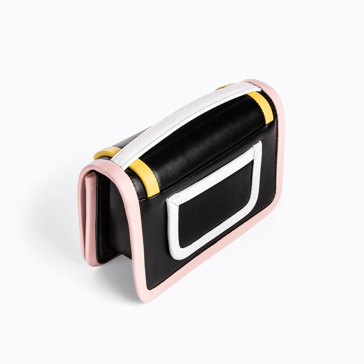 ピエールアルディの代名詞とも言える「アルファ ハンドバッグ」。鮮やかな色の組み合わせが印象的で、他に類を見ないアートのようなデザインです。ファスナーを使わない、シンプルな構造にもこだわっています。斜めに掛けてクロスボディとしたり、ハンドル持ちでクラッチバッグとしても使えます。