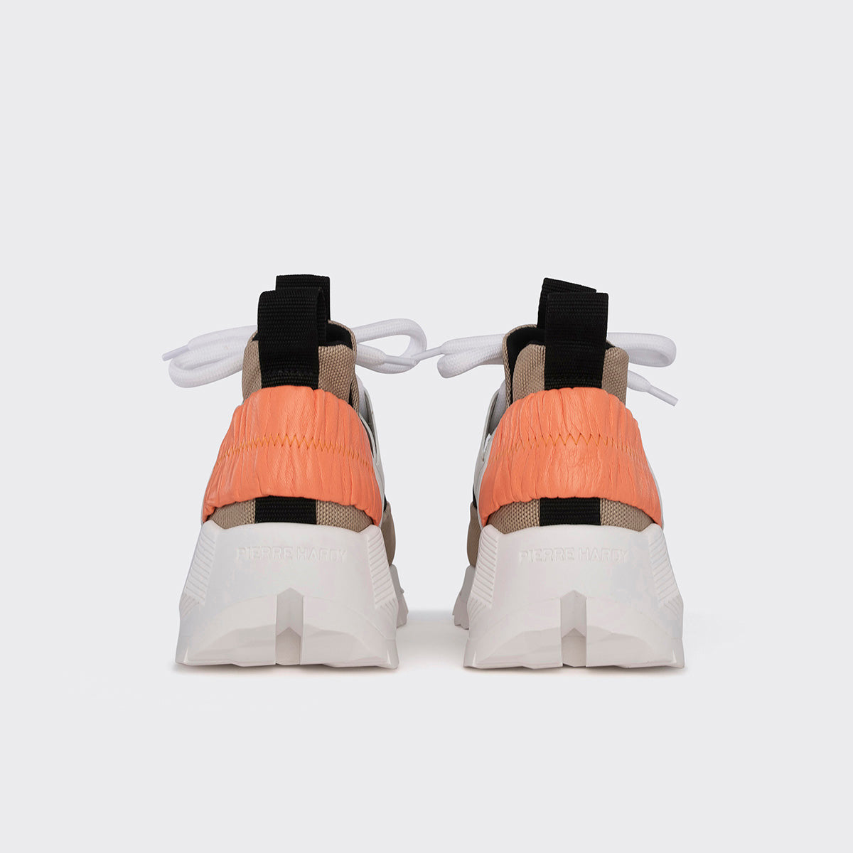 メゾンを代表するスニーカー「トレックコメット」にボリュームをプラスした「トレックコメットXL」スニーカー。ソールの厚みは約5cmにボリュームアップし、インパクトのあるシューレースの配列となりました。スリッポンでの着脱スタイルはそのままに、より印象的な足元を表現してくれます。